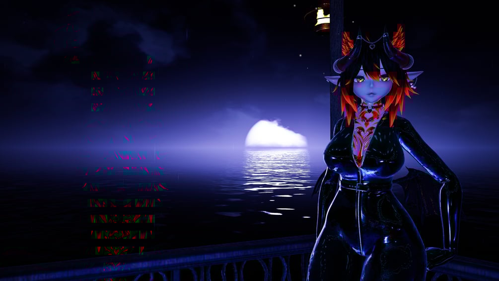 All work blender and unity, Props, Fishnet sleeves, Texture rework, Horns, Lock Choker, Pierced Tongue some Jewelry by me beardie/BeardieChan
