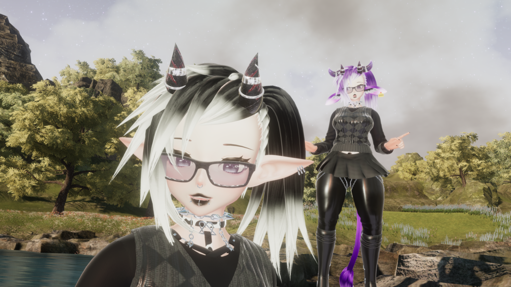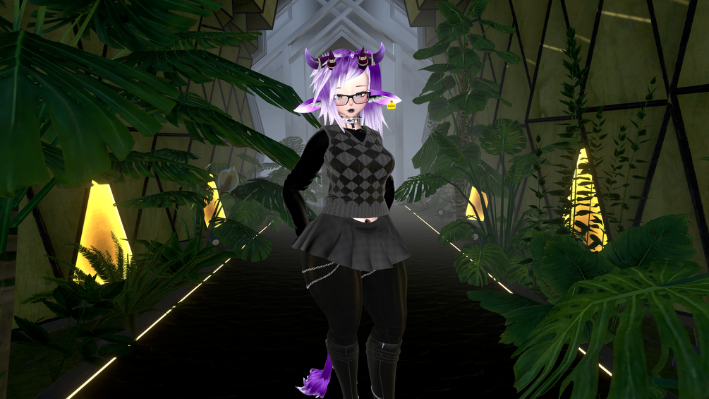 2 outfits, Clothing dissolves on main clothes, Toggles for Interaction Contacts, Horns, Tail, Fangs, Glasses, Ears cow elf and human.